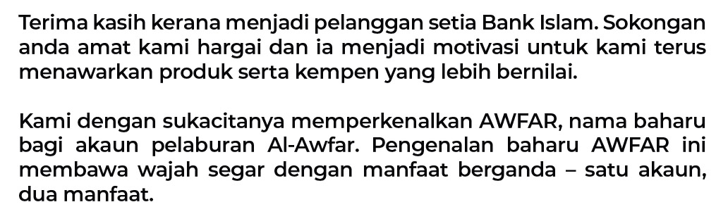 - Click here for view Product Disclosure Sheet for Awfar effective 16 February 2025 (Malay Version)