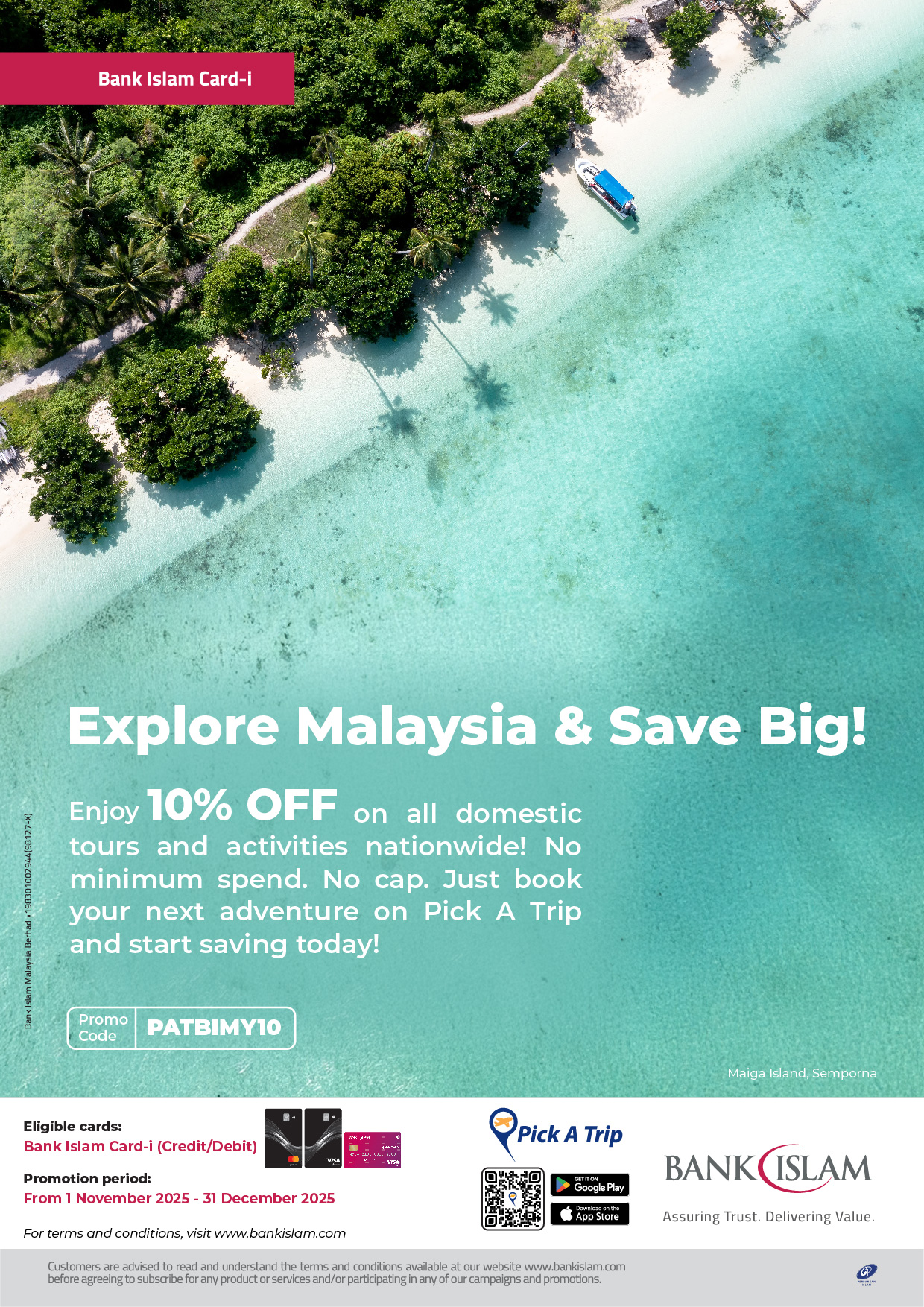 Enjoy 10% Off All Domestic Tours And Activities Across Malaysia! Valid 1 November 2025 – 31 December 2025 Terms & Conditions and Disclaimer Click here to download Terms & Conditions and Disclaimer