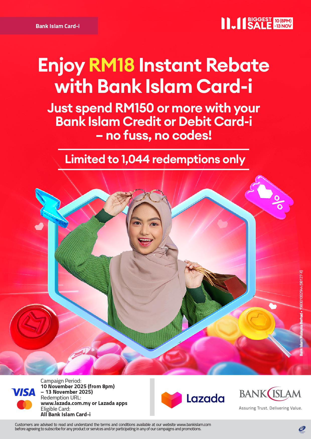 Enjoy RM18 Instant Rebate When You Spend RM150 Or More On Lazada Using Bank Islam Card-i (Credit/Debit)