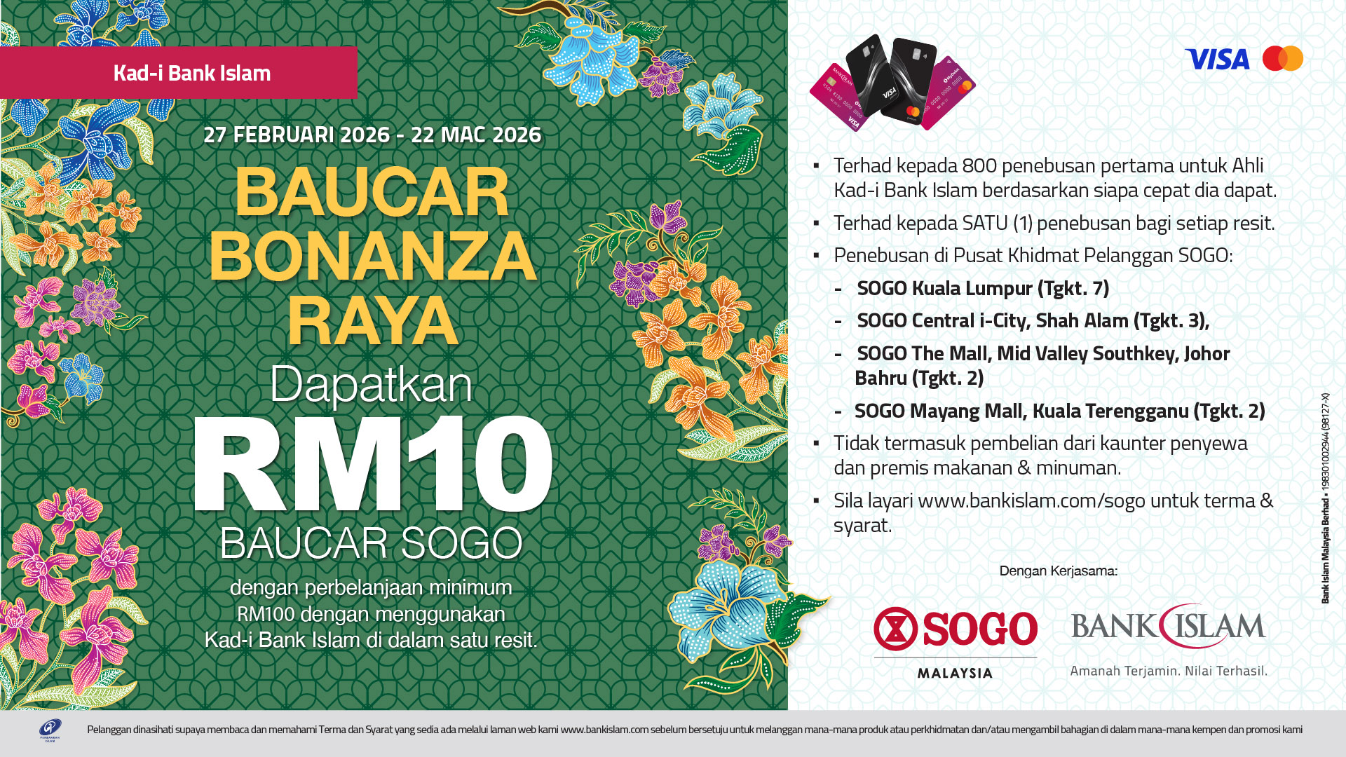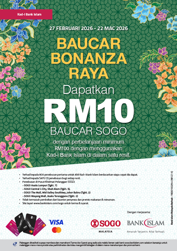 Jom Balik Kampung bersama SOGO dan Bank Islam Campaign Terms & Conditions Click here to download Terms & Conditions Bank Islam x SOGO Raya Voucher Bonanza Terms & Conditions Click here to download Terms & Conditions